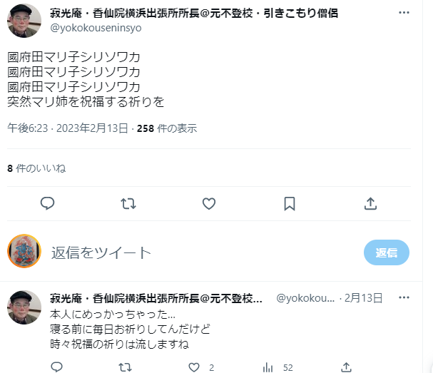 その上Twitterとか観て貰えばわかりますけれど元々私は学も無いし、くだらない事しか基本的に書きませんからね…だから有難い話をするお坊さんじゃありませんし…そんな私でも応援して下さる信者さんがいて下さり、こうして活動させて頂いております。
