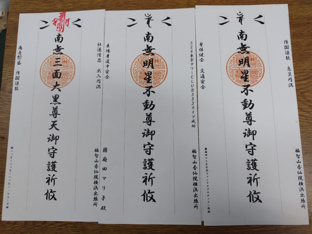 今回はマリ姉とマリ姉のスタッフさんの祈祷札 マリ姉の会社のは五月六日の甲子の日に住職が浴餅供で開眼してもらう予定です。