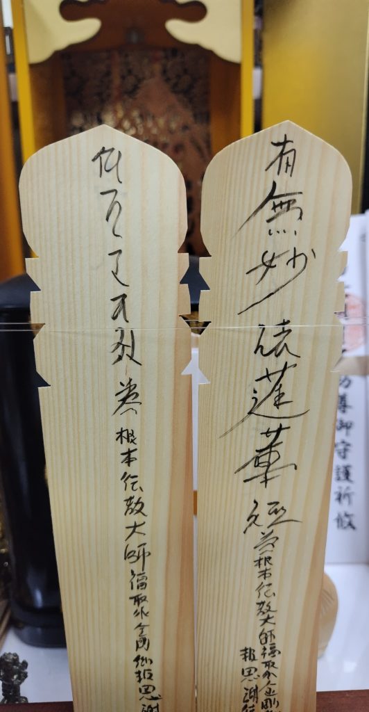 天台宗の分家と言える日蓮法華宗伝統の報恩塔婆を書いてお供えさせて頂きました。髭題目は大きすぎるのは相変わらずです…