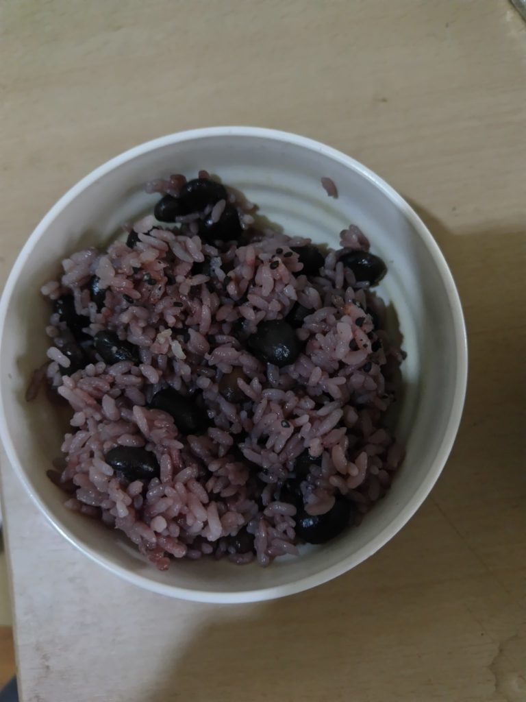 半年ぶり(?)に信徒の象輦氏が手製の黒豆ご飯作ってお供えしてくださいました。画像はお下げした黒豆ご飯です。