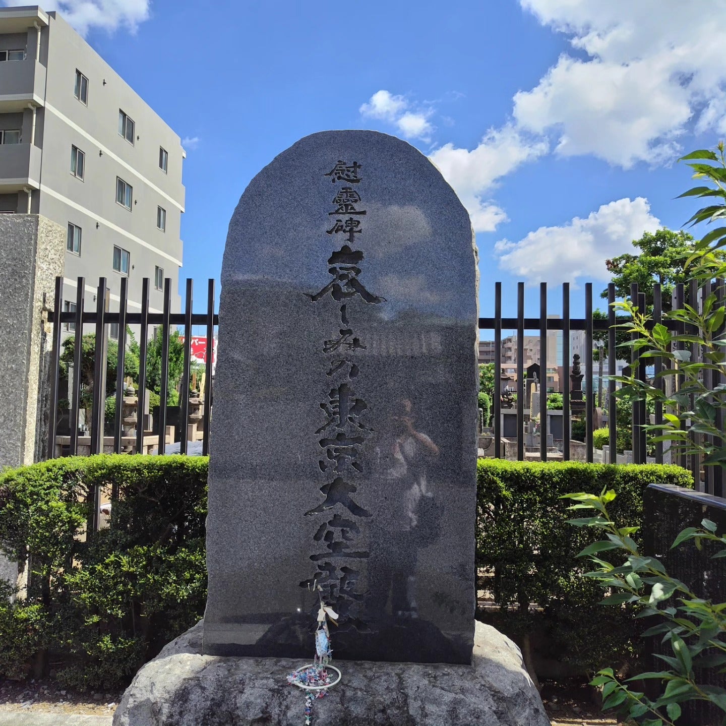 國府田マリ子大姉ファンの赤い空の題材である東京大空襲の慰霊碑前で読経回向してきました。