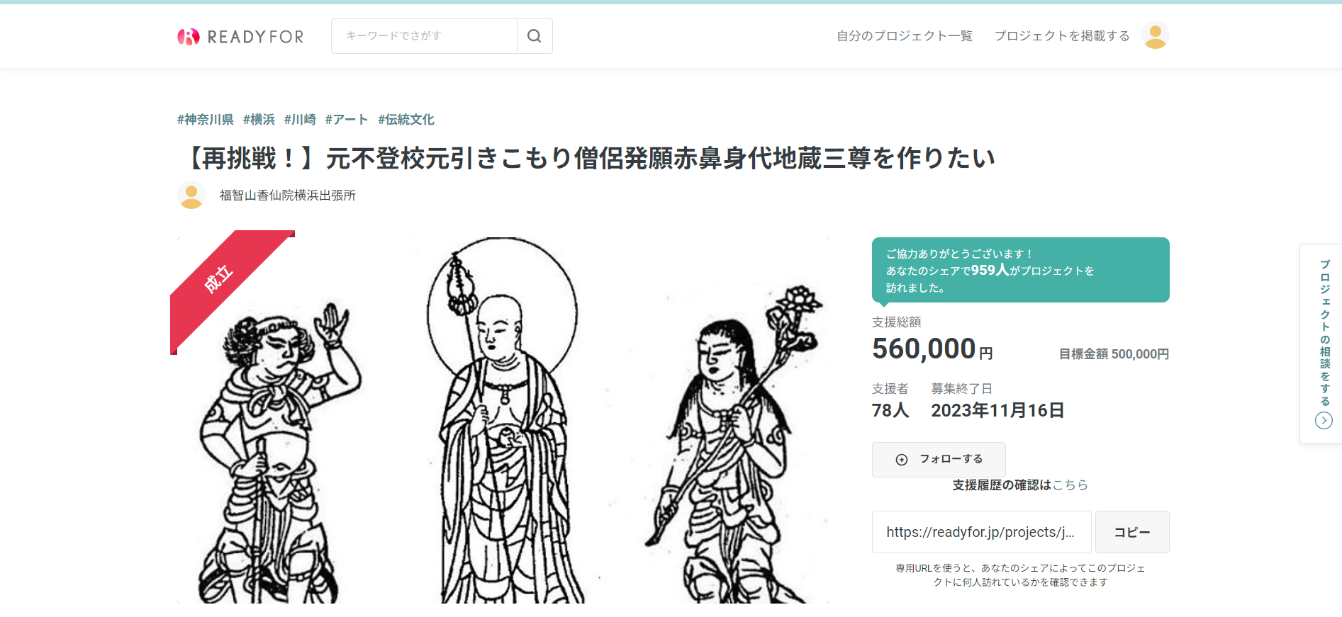お蔭様で二度目のクラウドファンディングが目標金額の50万円を上回る56万円の浄財が集まりました、お礼申し上げます。