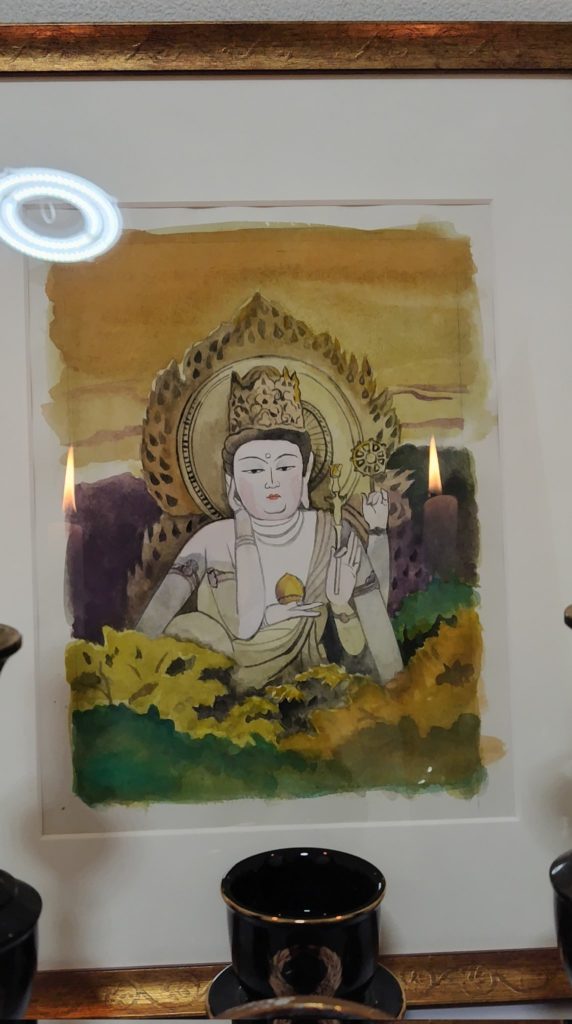 如意輪観音様と聖徳太子様の御縁日ですので鶴見の某所に安置している小説弓削道鏡表紙原画の如意輪観音様に供養法を一座修してきました。